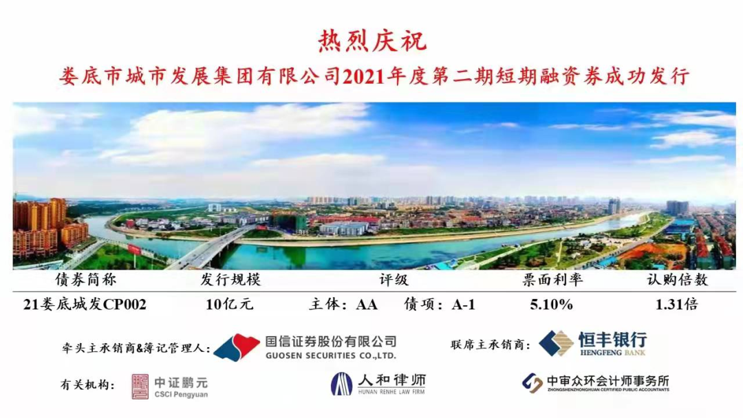 下一階段,市城發(fā)集團將按照市委政府戰(zhàn)略部署,持續(xù)在資本市場探索多元化的直接融資工具,并充分積累和利用此次債券融資的經(jīng)驗,與投資者建立良好互動關系,多措并舉做好融資工作,為城發(fā)集團轉型發(fā)展提供充足的資金保障,為婁底經(jīng)濟社會發(fā)展注入澎湃動力。